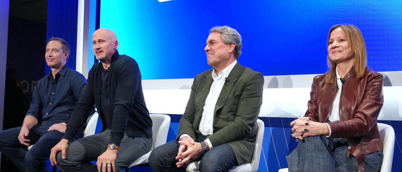 Mary Barra, Chair and CEO of General Motors (right to left), Mark Reuss, President, Sterling Anderson, Chief Product Officer, and Dave Richardson, Senior Vice President Software and Services Engineering at “GM Forward” on Wednesday, October 22, 2025 in New York.