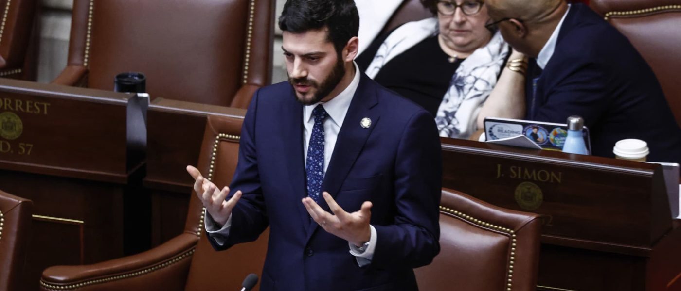 Assemblymember Alex Bores from Assembly District 73 speaks on the State Capitol Wednesday, May 29, 2025, in Albany New York.