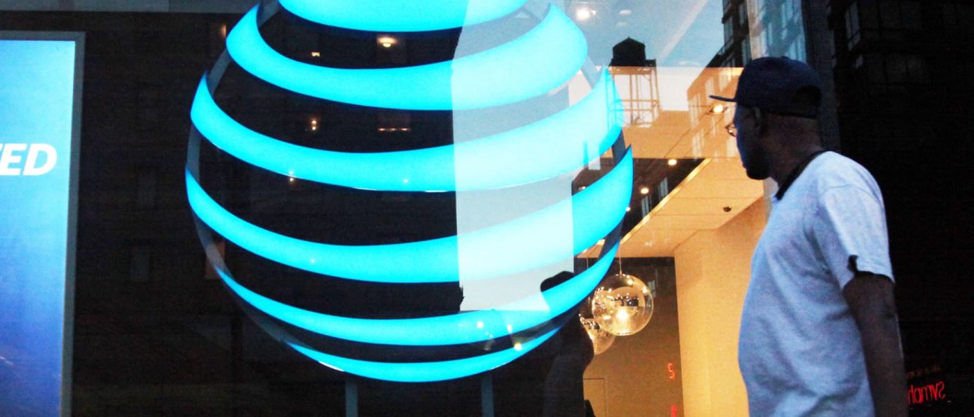 A pedestrian walks in front of an AT&T location in New York.