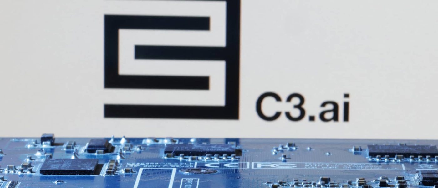 The C3.ai logo is seen near a computer motherboard in this illustration taken on Jan. 8, 2024.