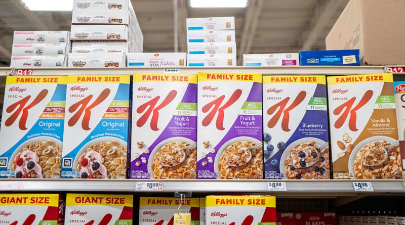 Read MoreBoxes of Kellogg’s Special K cereal are displayed on shelves at an H-E-B grocery store on May 6, 2025 in