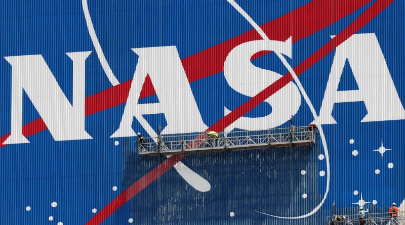 Read MoreWorkers repaint the NASA logo on the Vehicle Assembly Building at the Kennedy Space Center on May 28, 2020 in