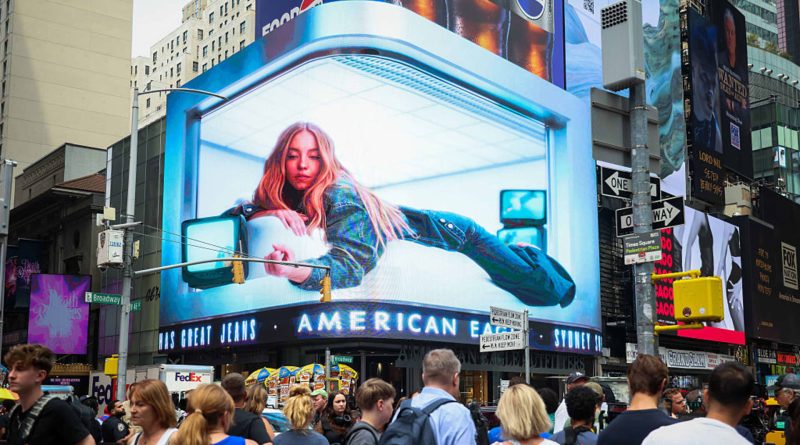 Read MoreAn American Eagle advertisement featuring actress Sydney Sweeney on a billboard in Times Square in New York, US, on Thursday,