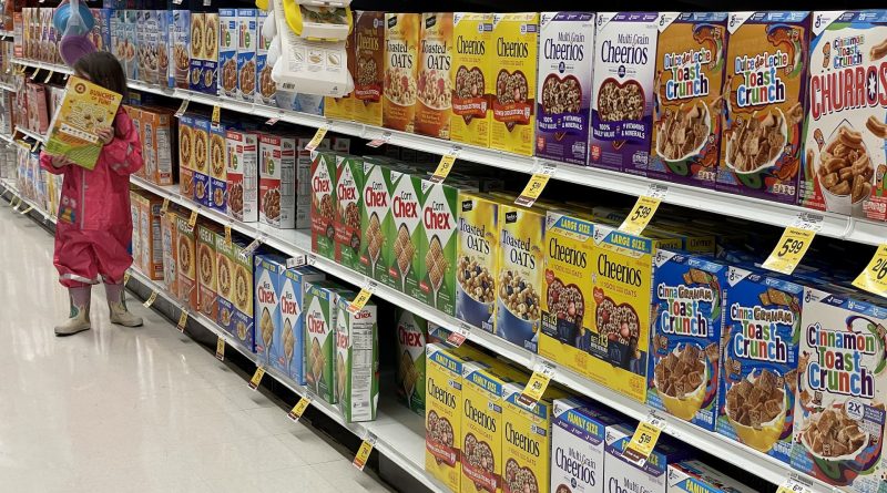 Read MoreBoxes of General Mills cereal are displayed on a grocery store shelf on December 20, 2023 in San Anselmo, California.