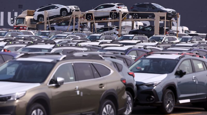 Read MoreNewly manufactured cars awaiting export at a port in Yokohama, south of Tokyo, Japan, on March 27, 2025. Issei Kato