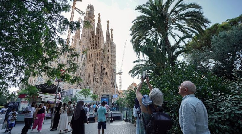 Read MoreTourists take photos as they visit the Sagrada Familia basilica in Barcelona, on August 2, 2025. (Photo by Manaure QUINTERO