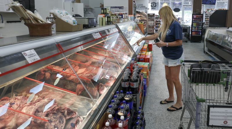Read MoreMarlo Ramirez carries slabs of beef to be prepared for a customer in a grocery store on July 22, 2025