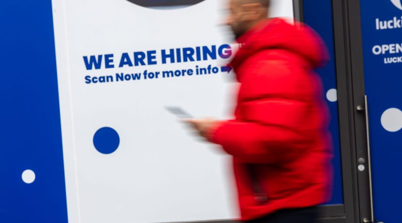 Read MoreA ‘now hiring’ sign is displayed in a business’s window in Manhattan on Jan. 9, 2026, in New York City.
