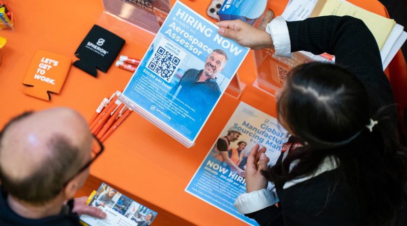 Read MoreJobseekers speak with recruiters past event signage during the WorkSource North Seattle Career Fair in Seattle, Washington, US, on Tuesday,