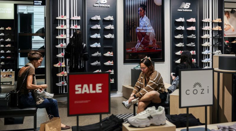 Read MoreShoppers try on shoes at a Footlocker store in New York City, U.S., May 16, 2025. Jeenah Moon | Reuters