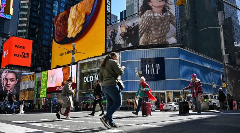 Read MoreOld Navy and Gap retail stores are seen as people walk through Times Square in New York City on April