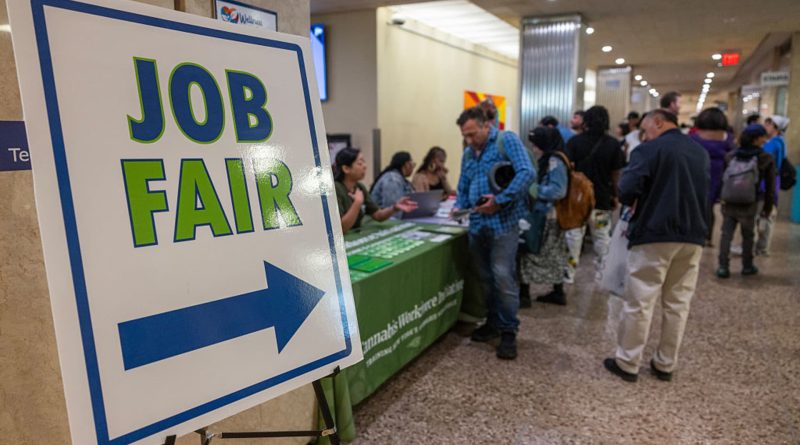 Read MoreA sign at a NYS Department Of Labor job fair at the Downtown Central Library in Buffalo, New York, US,