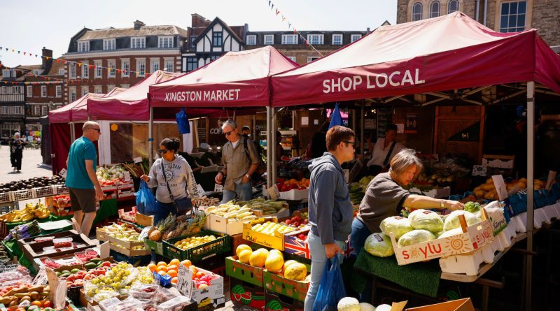 Read MoreA shopper selects fresh produce from a market stall in the Kingston district of London, UK, on Monday, May 20,