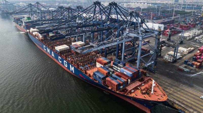 Read MoreCargo containers stacked aboard a ship at the Jakarta International Container Terminal in Tanjung Priok Port on Aug. 7, 2025.