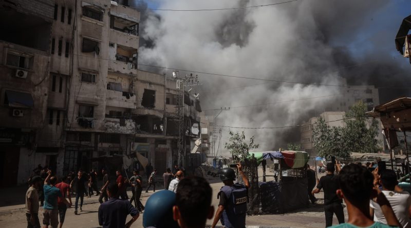 Read MorePalestinians watch as the Al-Ghafri tower collapses amid heavy smoke during an Israeli strike in the Rimal neighborhood of Gaza