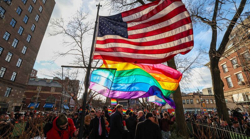 Read MoreA person secures the flags during a ceremony where New York City officials re-raise the Pride flag at the Stonewall