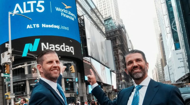 Read MoreDonald Trump Jr. and Eric Trump pose for pictures outside the Nasdaq building after ringing the opening bell to celebrate