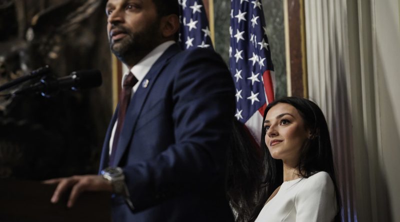 Read MoreAlexis Wilkins looks at her boyfriend, Kash Patel, as he speaks after being sworn in as the new Director of