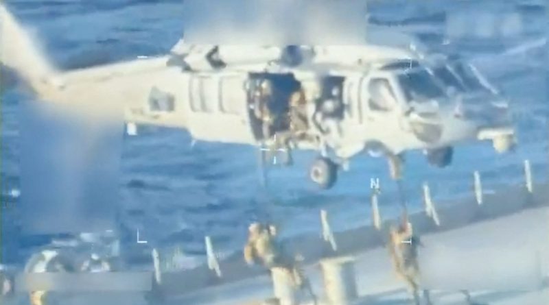 Read MoreU.S. forces abseil onto an oil tanker during a raid described by U.S. Attorney General Pam Bondi as its seizure