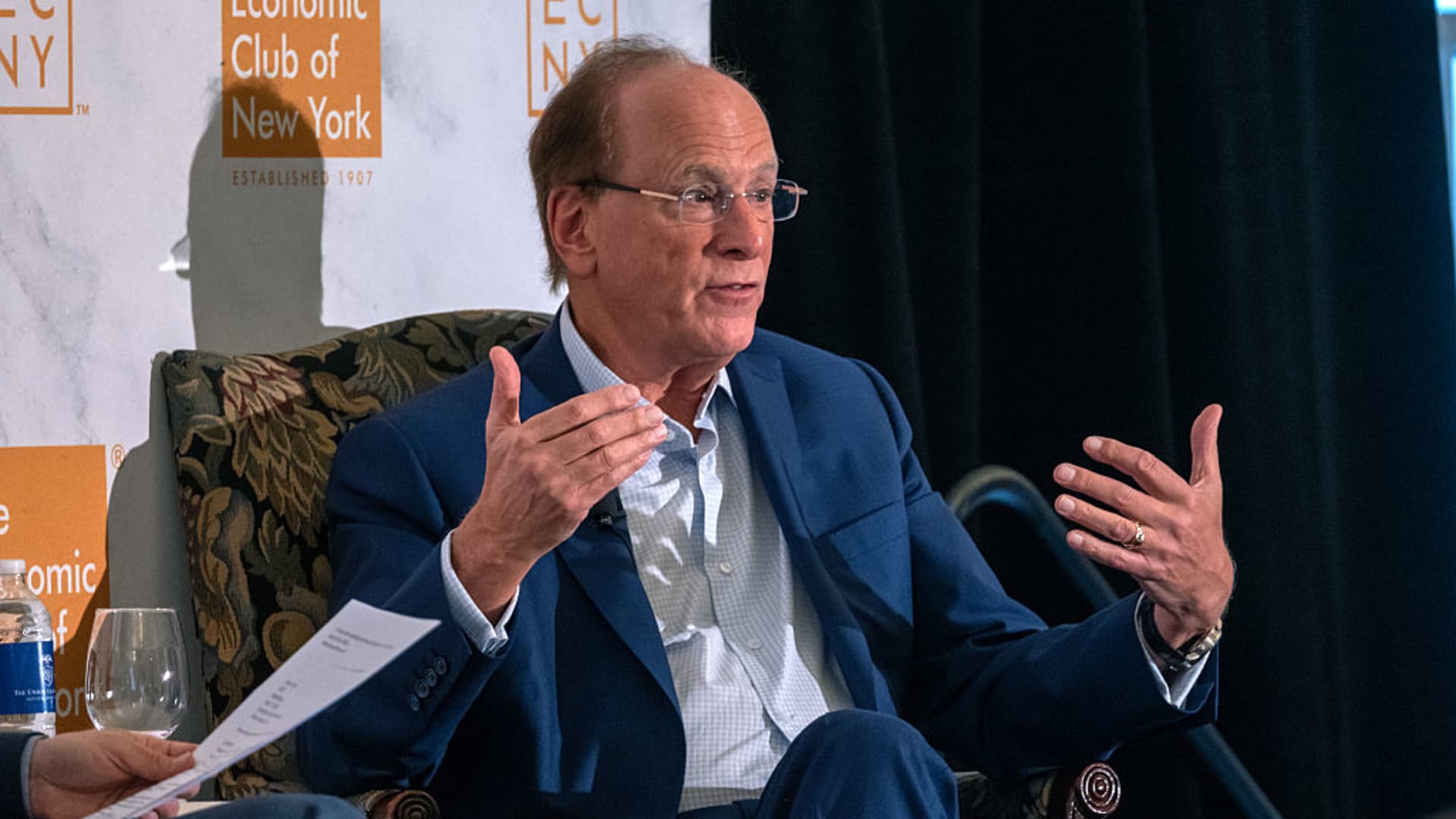 BlackRock CEO Larry Fink speaks at the Economic Club of New York on April 07, 2025, in New York City.