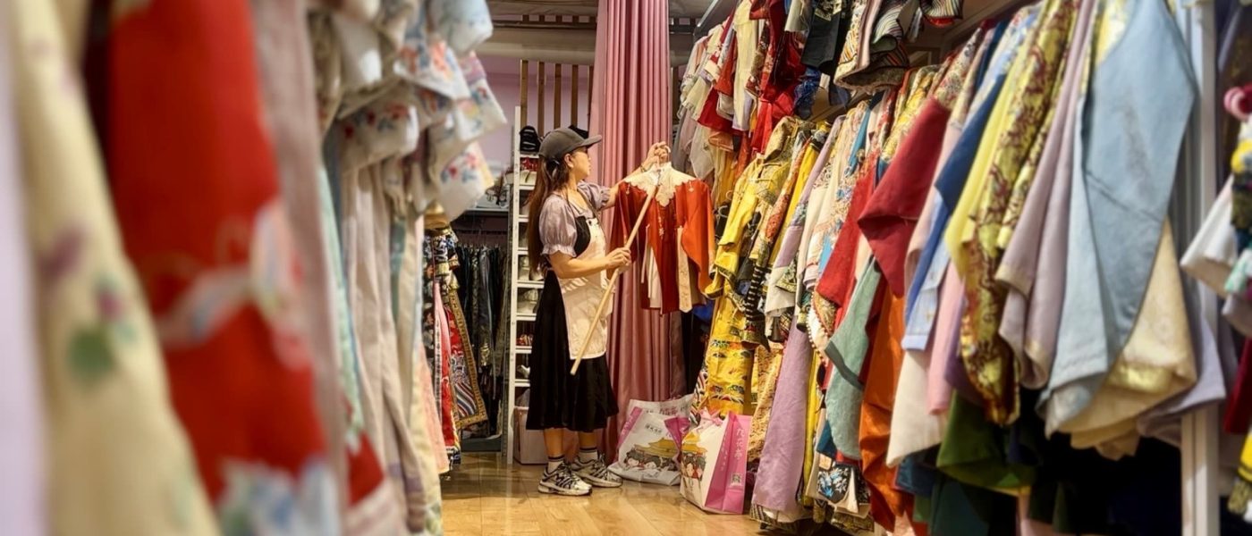 Chinese stock investor Hou Yujie at her store renting traditional Chinese clothes near the Forbidden City in Beijing. September 18, 2025.