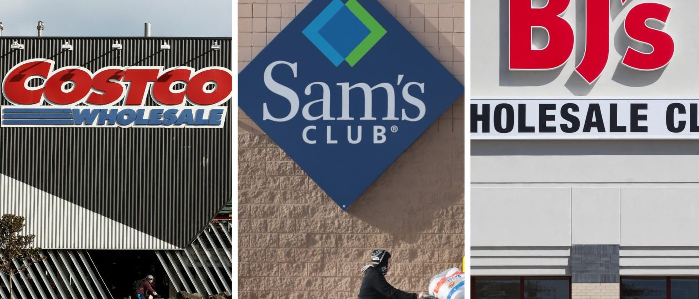 Costco Wholesale, Sam’s Club and BJ’s Wholesale stores.