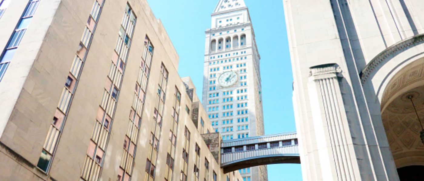 Met Life clock tower and pedestrian bridge, Madison Avenue, New York.