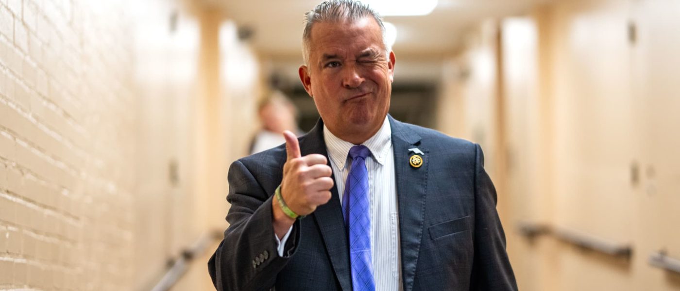 Rep. Don Bacon (R-Neb.) gives a thumbs up as he arrives for a House Republican Conference meeting at the U.S. Capitol on September 10, 2024 in Washington, DC.