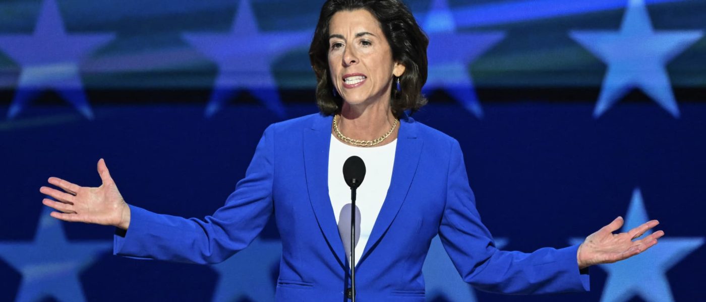 US Commerce Secretary Gina Raimondo speaks on the first day of the Democratic National Convention (DNC) at the United Center in Chicago, Illinois, on August 19, 2024.