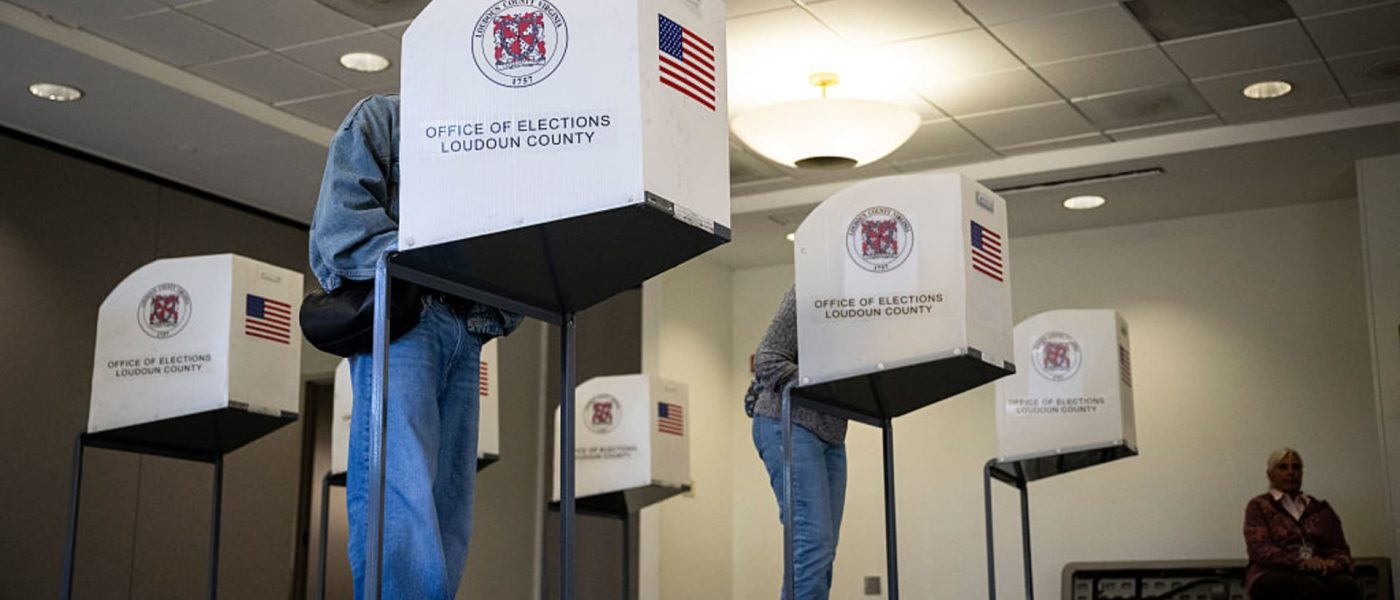 Voters cast their ballots at a polling station at the Ida Lee Recreation Center in Leesburg, Virginia, US, on Tuesday, Nov. 4, 2025.