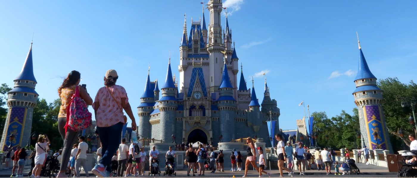 People walk in front of Cinderella’s Castle at the Magic Kingdom Park at Walt Disney World in Orlando, Florida, May 31, 2024.