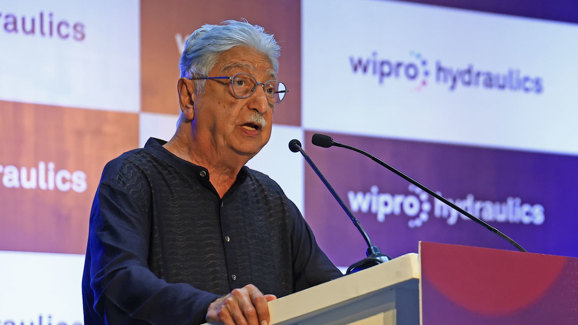 Azim Premji, Founder Chairman of Wipro, speaks during the inauguration of the Wipro Hydraulic Plant in Jaipur, Rajasthan, India, on Aug. 22, 2024.