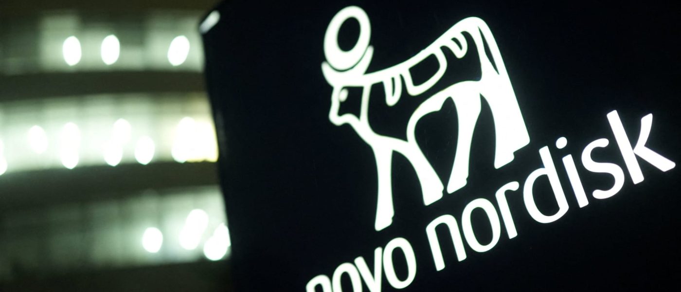 The logo of pharmaceutical company Novo Nordisk is displayed in front of its offices in Bagsvaerd, on the outskirts of Copenhagen, Denmark, Nov. 24, 2025.