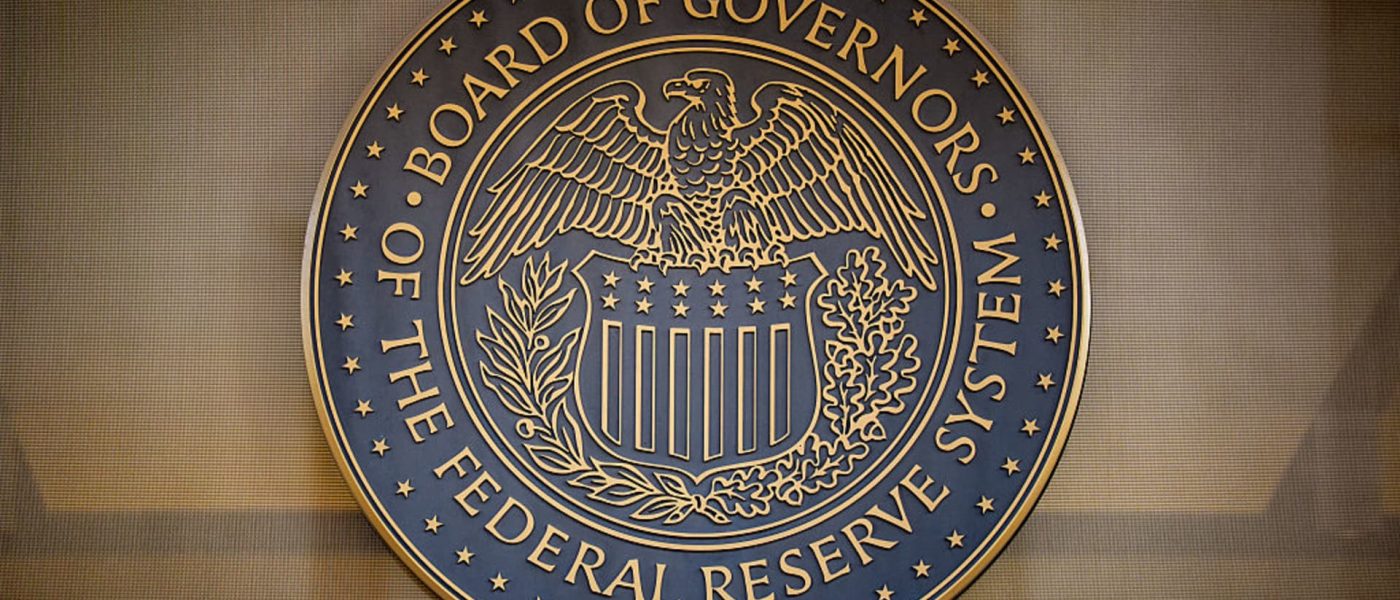 The Federal Reserve logo is visible on the William McChesney Martin Jr. Building on December 9, 2025 in Washington, DC.