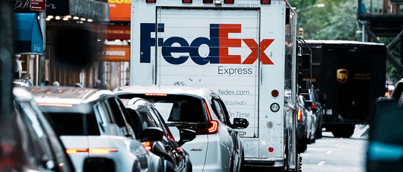 A Fedex truck is seen during heavy traffic on Sept. 16, 2025 in New York City.