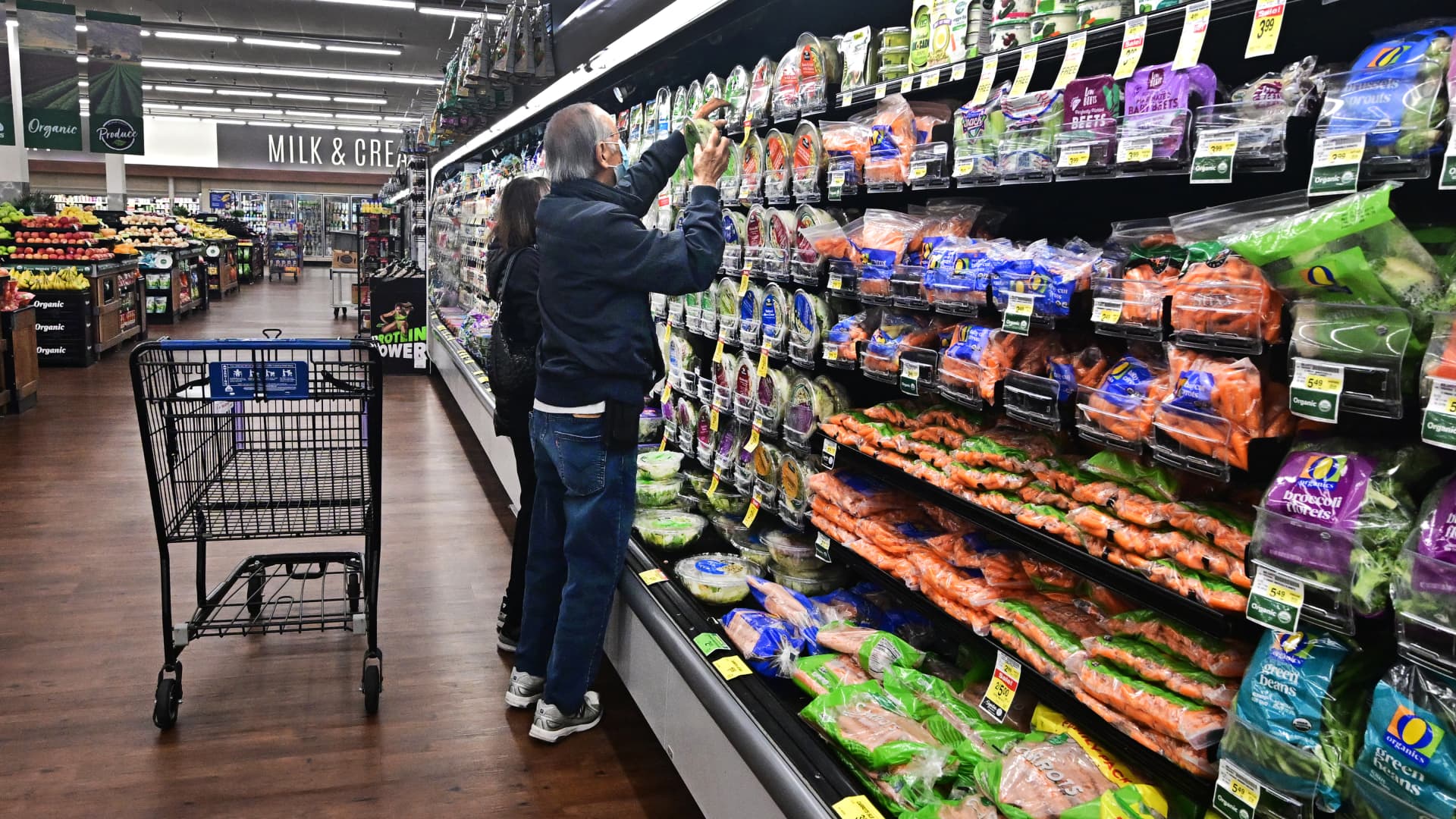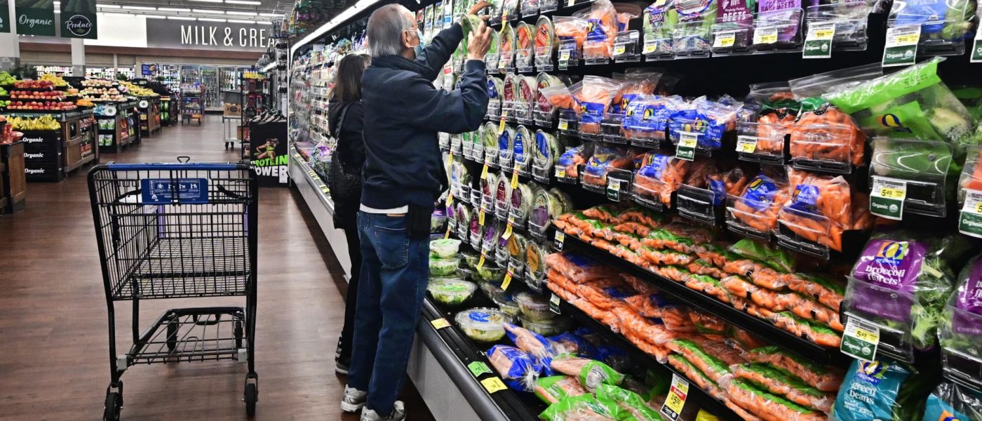 People shop at a supermarket in Montebello, California, on May 15, 2024.
