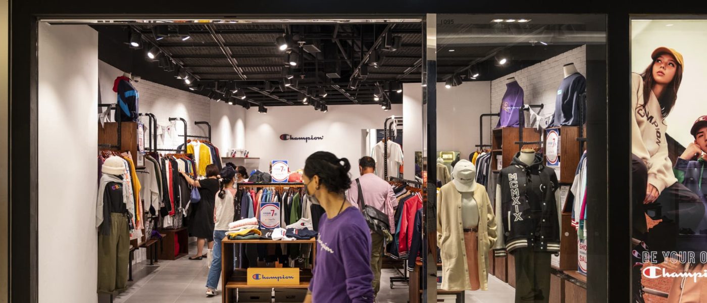 A shopper walks past the American sportswear fashion brand Champion store in Hong Kong.