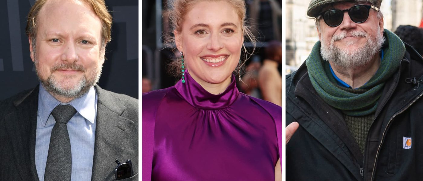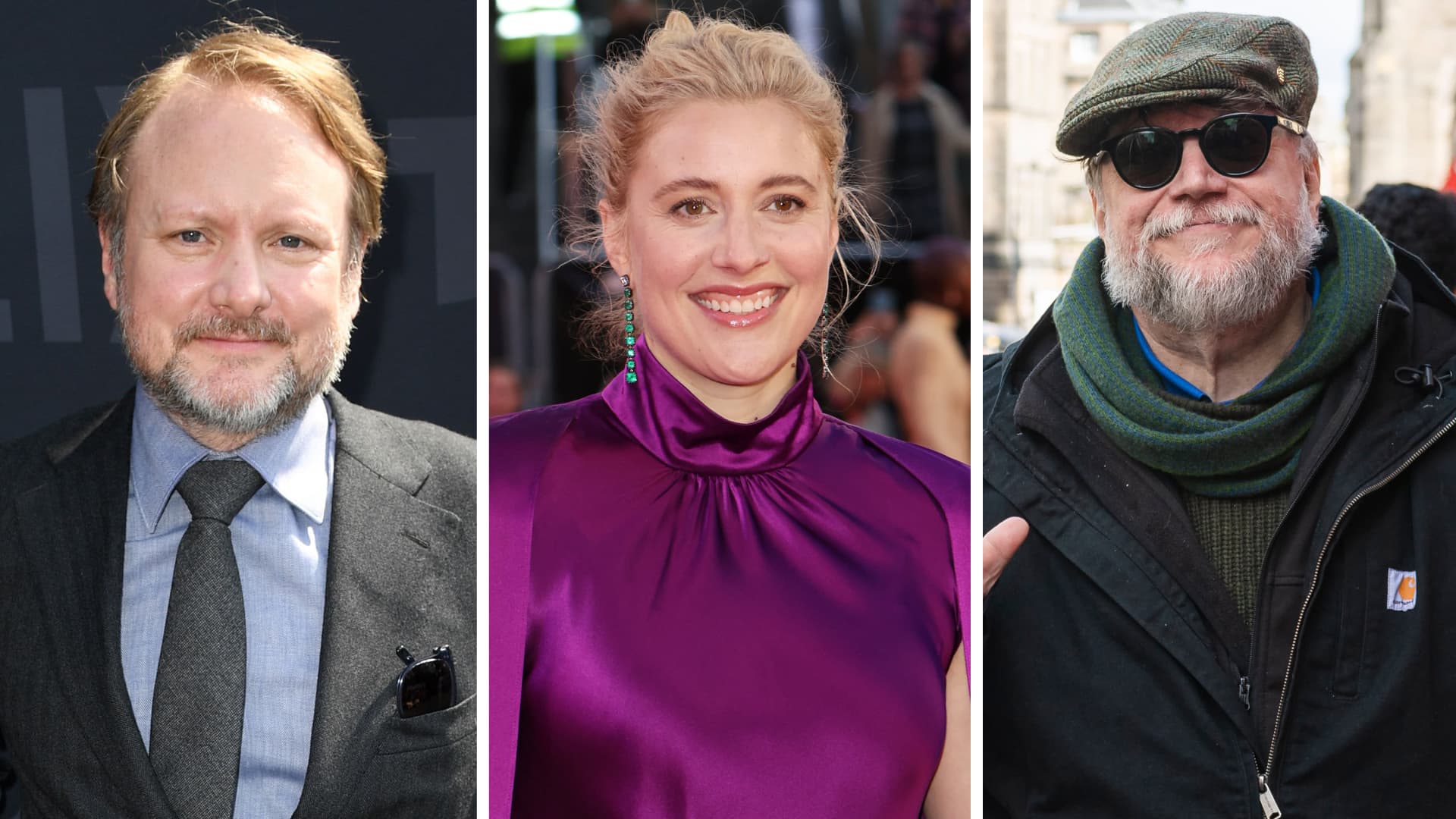 Film directors Rian Johnson (L), Greta Gerwig (C), and Guillermo Del Toro (R)
