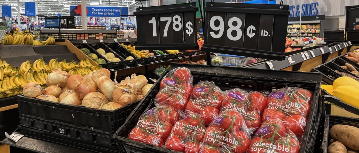 Fruit and vegetables are seen at a Walmart supermarket in Houston, Texas, on May 15, 2025.