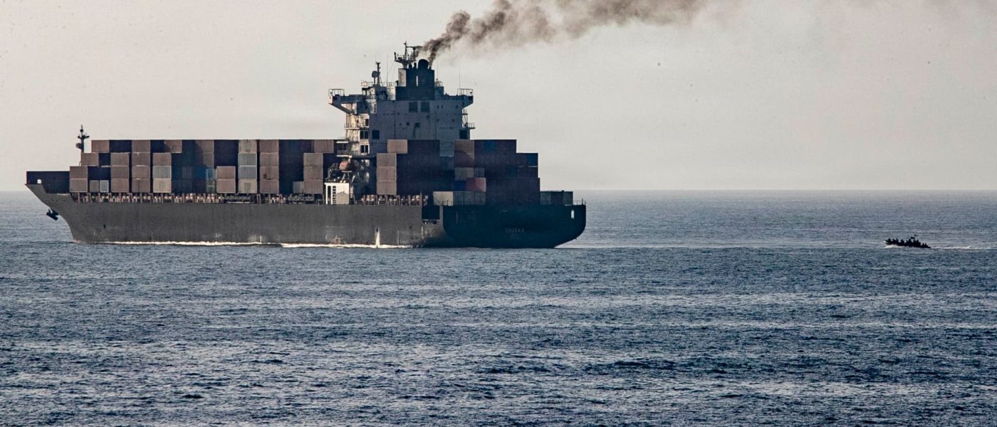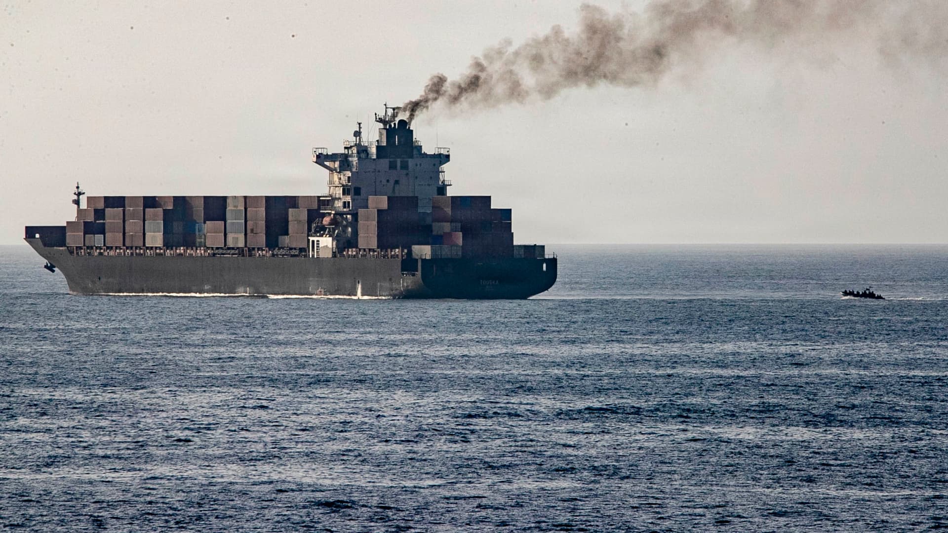 In this handout photo provided by U.S. Central Command, U.S. forces patrol the Arabian Sea near M/V Touska on April 20, 2026, after firing upon the Iranian-flagged vessel that the U.S. accused of attempting to violate the U.S. naval blockade of Iranian ports near the Strait of Hormuz.