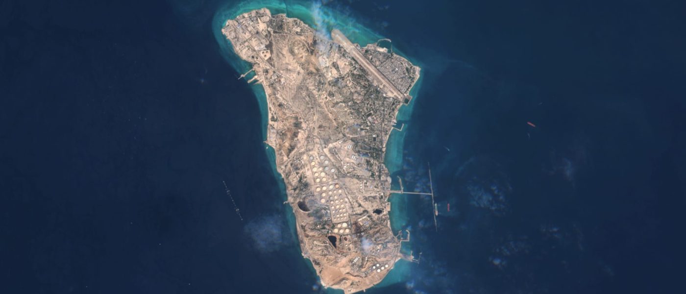 Satellite view of Kharg Island, located in the Persian Gulf off the coast of Iran.