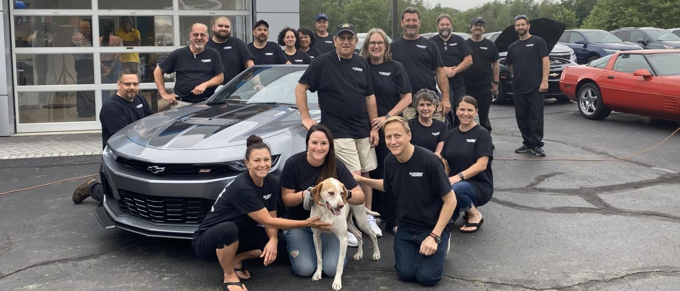 Matthews Auto Group CFO John Totolis (from left to right), Dave Cantin Group managing director Talon Fee, Sylvester Chevrolet President Derek Sylvester, partner Sylvester Chevrolet Neil Sylvester, Matthews Auto Group CEO Rob Matthews and Matthews Auto Group President Mark Gaeta outside Sylvester Chevrolet in Peckville, Pennsylvania