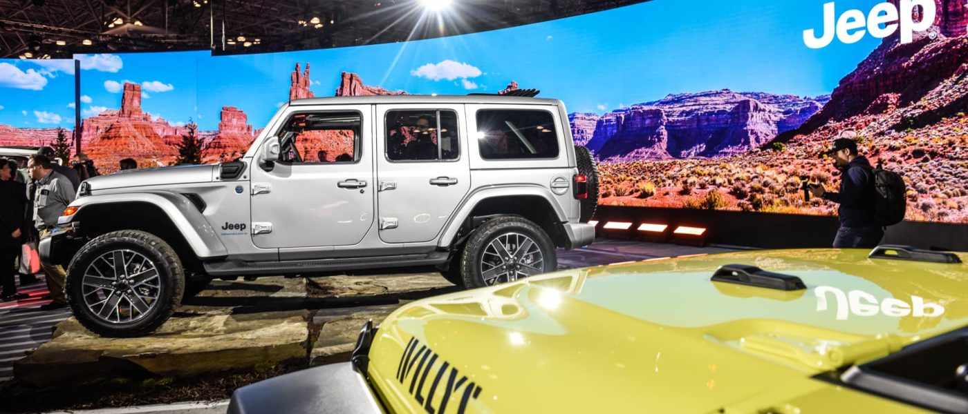 A Jeep Wrangler plug-in hybrid electric vehicle (PHEV) during the 2023 New York International Auto Show (NYIAS) in New York, on Wednesday, April 5, 2023.