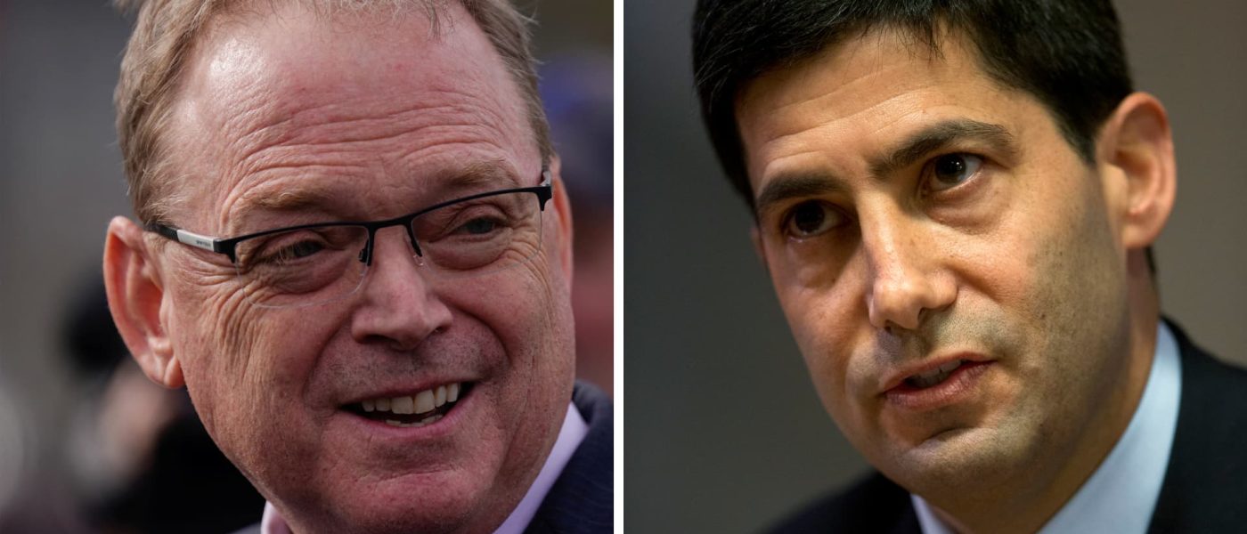 Kevin Hassett, director of the National Economic Council, left, and Kevin Warsh, former governor of the U.S. Federal Reserve.
