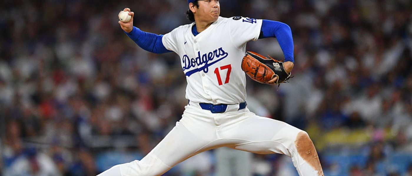Los Angeles Dodgers pitcher Shohei Ohtani (17) throws a pitch during the MLB game between the Philadelphia Phillies and the Los Angeles Dodgers on September 16, 2025 at Dodger Stadium in Los Angeles, CA.