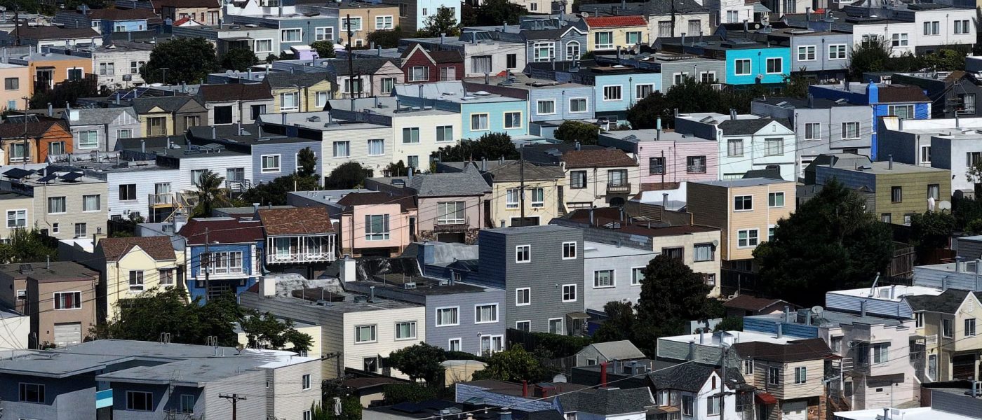 An aerial view of homes in a neighborhood on Aug.27, 2025 in San Francisco, California.