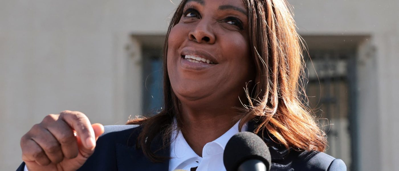 New York Attorney General Letitia James speaks to the media outside the U.S. District Court in Norfolk, Virginia, Oct. 24, 2025.