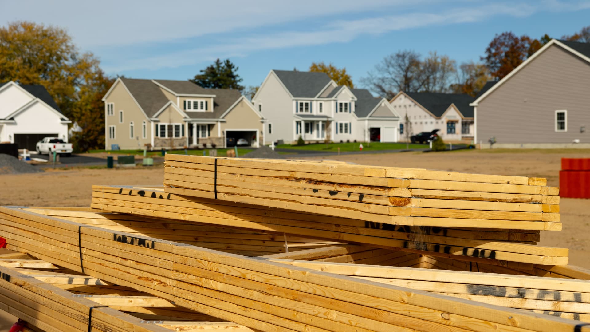 A pile of lumber at a home under construction at the Cold Spring Barbera Homes subdivision in Loudonville, New York, US, on Wednesday Nov. 8, 2023.