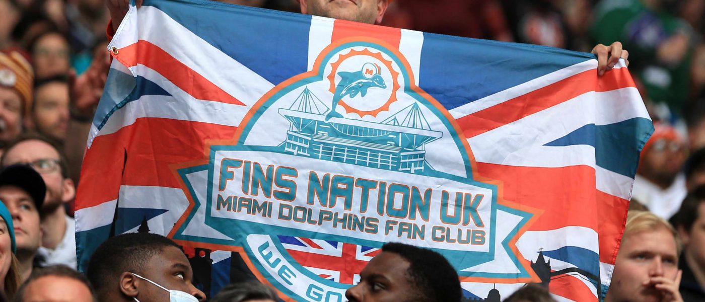 Fans are seen during the NFL London 2021 match between Miami Dolphins and Jacksonville Jaguars at Tottenham Hotspur Stadium on October 17, 2021 in London, England.
