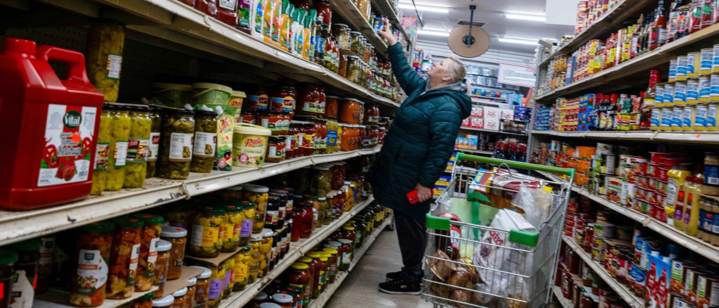 People shop at a grocery store in Brooklyn on Dec. 12, 2025 in New York City.